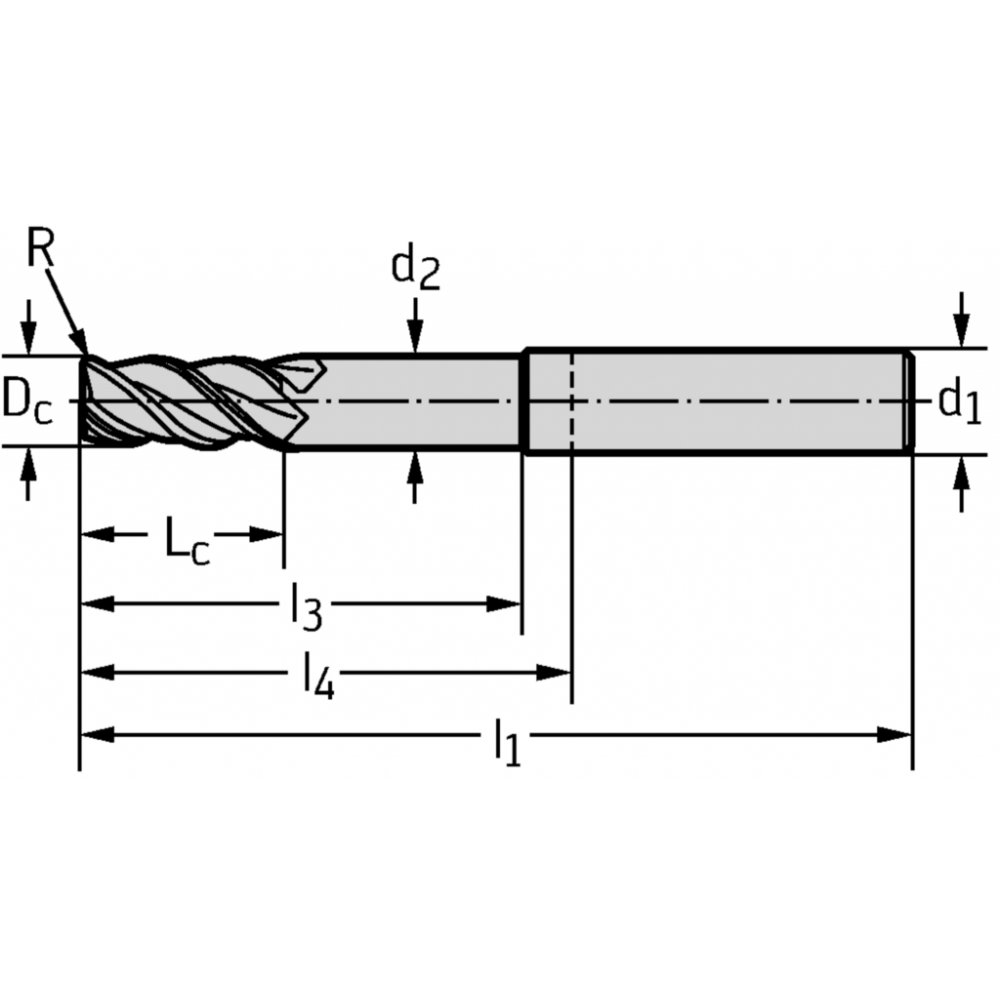 Freze cilindro-frontale/de canelare din carbură metalică MC267 • Advance • coadă DIN 6535 HA • metric • flute helix angle 45° • Tip Al 45 • center cutting capability • WJ30UU • Dc=20mm • R=0,5mm • Z=3