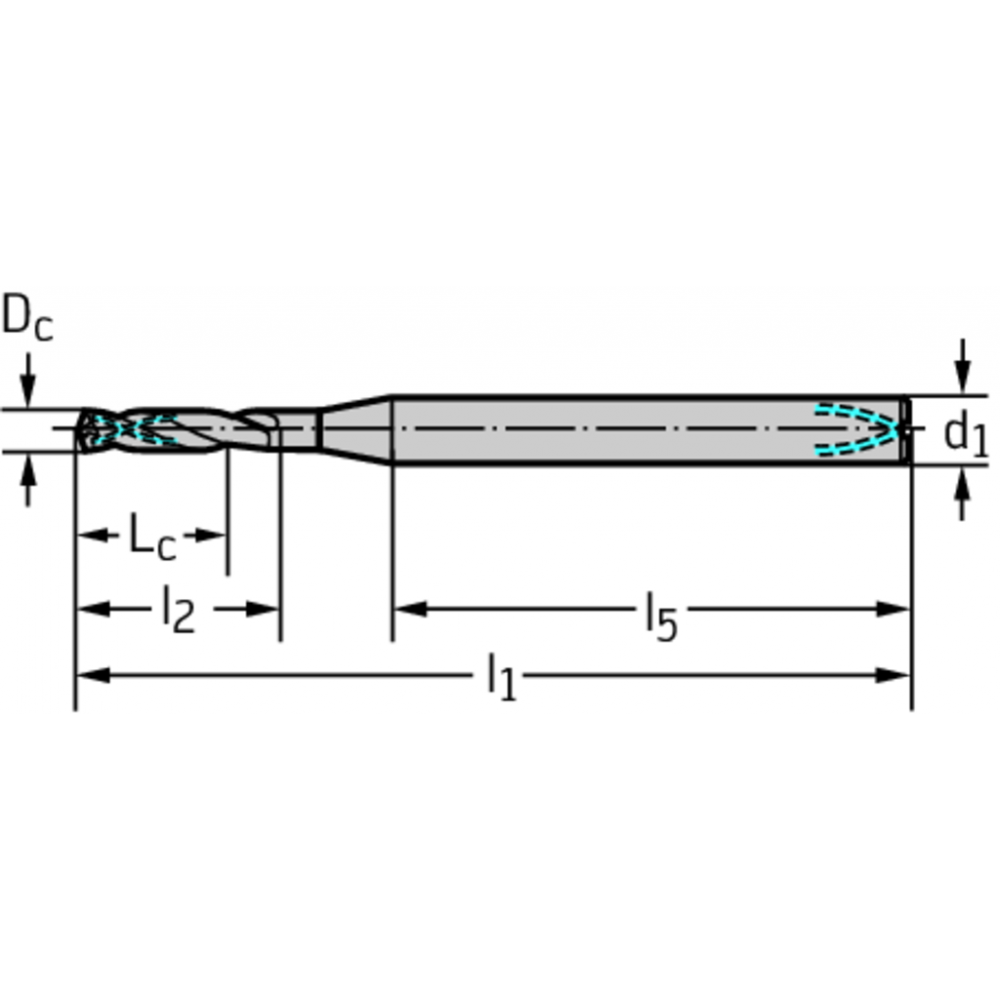 Micro-burghie din carbură metalică cu canal de răcire A6588TML-1/16IN