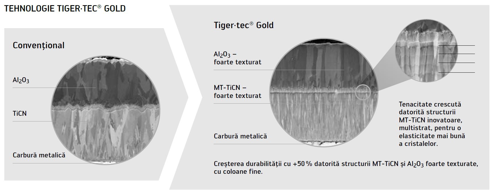 Acoperire cu mai multe straturi MT-TiCN – îmbunătăţeşte caracteristicile